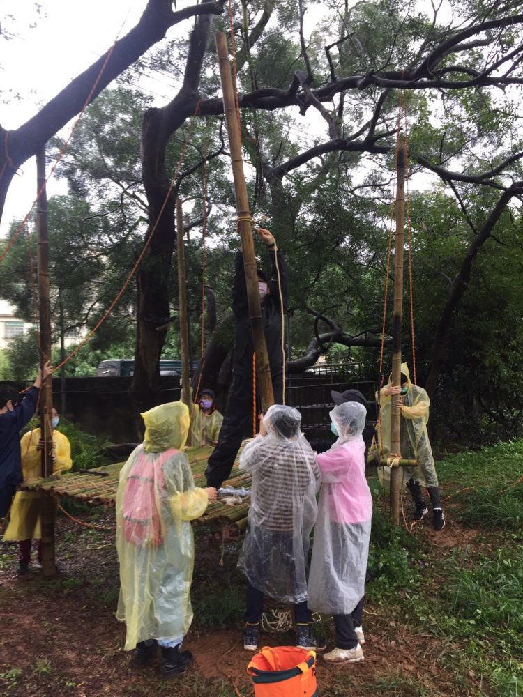 不畏懼大風大雨也要向前行的一群蓋樹屋的學員們,遇到了五月梅雨季,學員們依舊沒有放棄堅持在這個克難的氣候當中完成樹屋。J.D則說上個禮拜大家都沒有來,我們四個人做的精疲力盡,果然大家必須齊力同心一同蓋樹屋,少了任何一個成員都是不完整的。